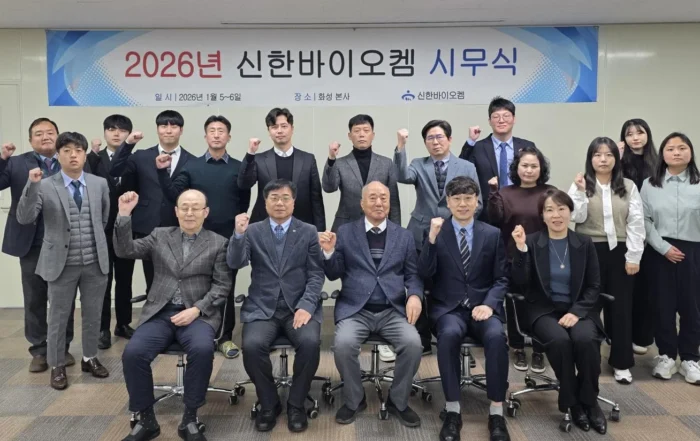 지난 1월 5일 신한바이오켐은 2026년 병오년 새해를 맞아 화성에 위치한 본사에서 시무식을 진행하였다. 시무식은 승진 대상자 인사발령과 우수사원 표창으로 시작했으며, 이어 구본현 회장의 신년사를 포함한 특강이 이어졌다. 구본현 회장은 올해로 40주년을 맞은 신한바이오켐의 발자취를 돌아보며 반성과 다짐을 통해 미래를 준비하자는 메세지를 전했다. 오후에는 빙고게임을 통해 자칫 딱딱할 수 있는 시무식 분위기를 탈피하고 구성원 간의 유대감을 높이며 소통하는 시간을 가졌다. [...]